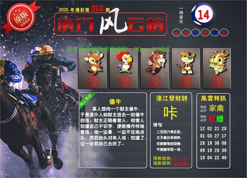 318期:风云榜-濠江發財詩【發】 诗句:更新中 今日生肖:更新中 |