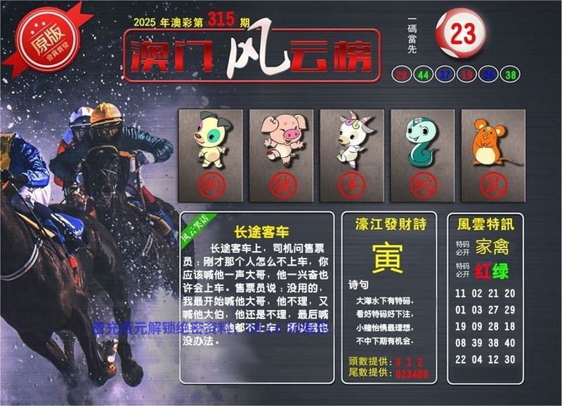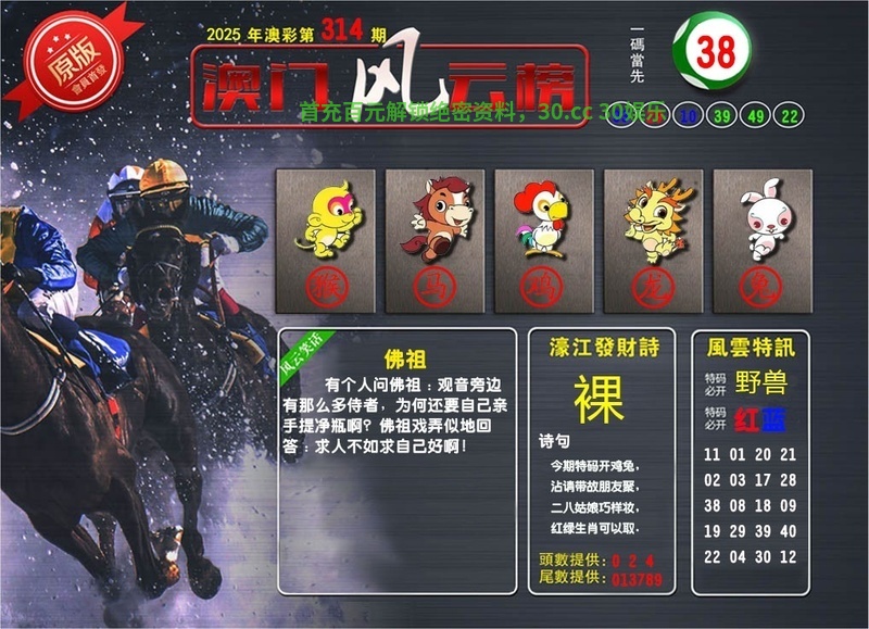316期🧁江南才子🧁【六肖12码】开:马24中
